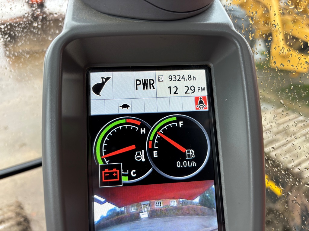 Direct water board, 15 metre reach, Prolec height limiter, cab guards, reed basket + extra circuit, extra counter weight, reverse camera, hydraulic quick hitch, air con.